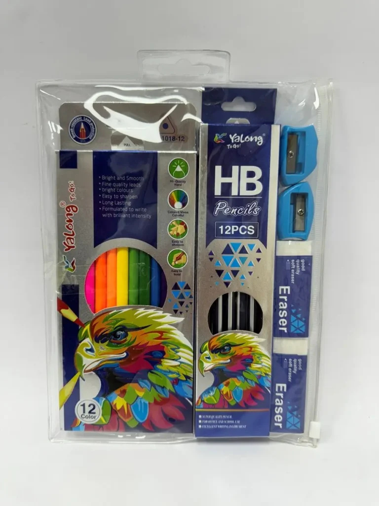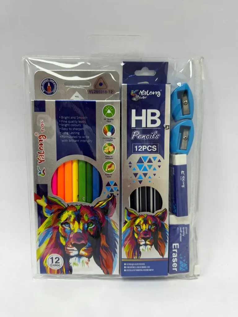 סט כלי כתיבה 6 חלקים בתיק שקוף