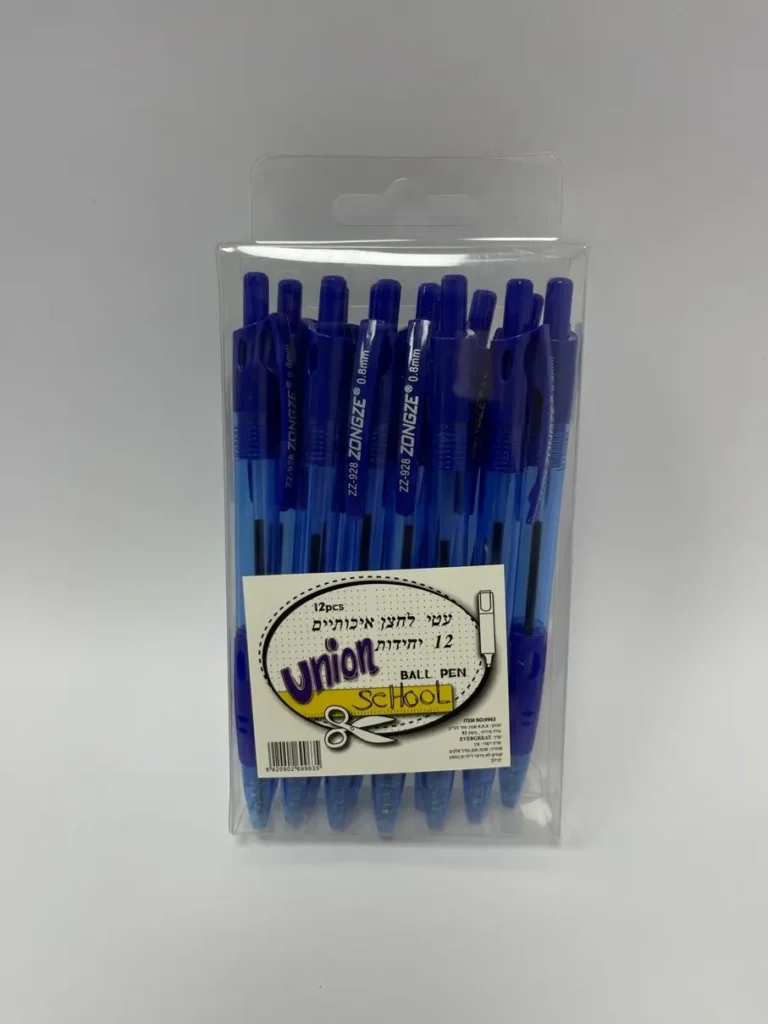 עט לחצן 12 יח' כחול בלבד בקופ' פלסטיק