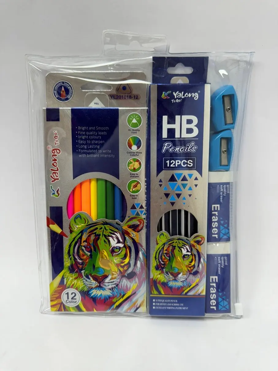 סט כלי כתיבה 6 חלקים בתיק שקוף