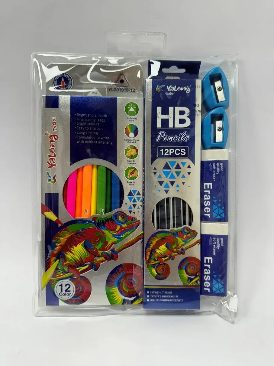 סט כלי כתיבה 6 חלקים בתיק שקוף